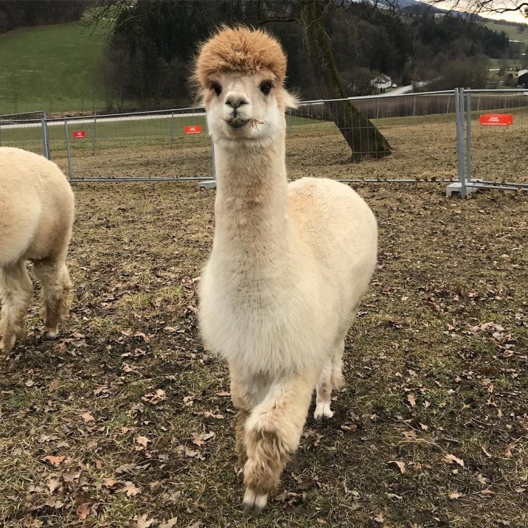 Mein Name ist Lionel. Ich bin der Chef der Herde und immer der Erste wenn es um Leckerlis geht. Ich bin ein sehr selbstbewusstes und großes Alpaka und führe auch bei Spaziergängen die Gruppen an. Berühren und streicheln mag ich garnicht, außer wenn ich am Halfter bin, dann bin ich ein richtiges Vorzeige-Alpaka.