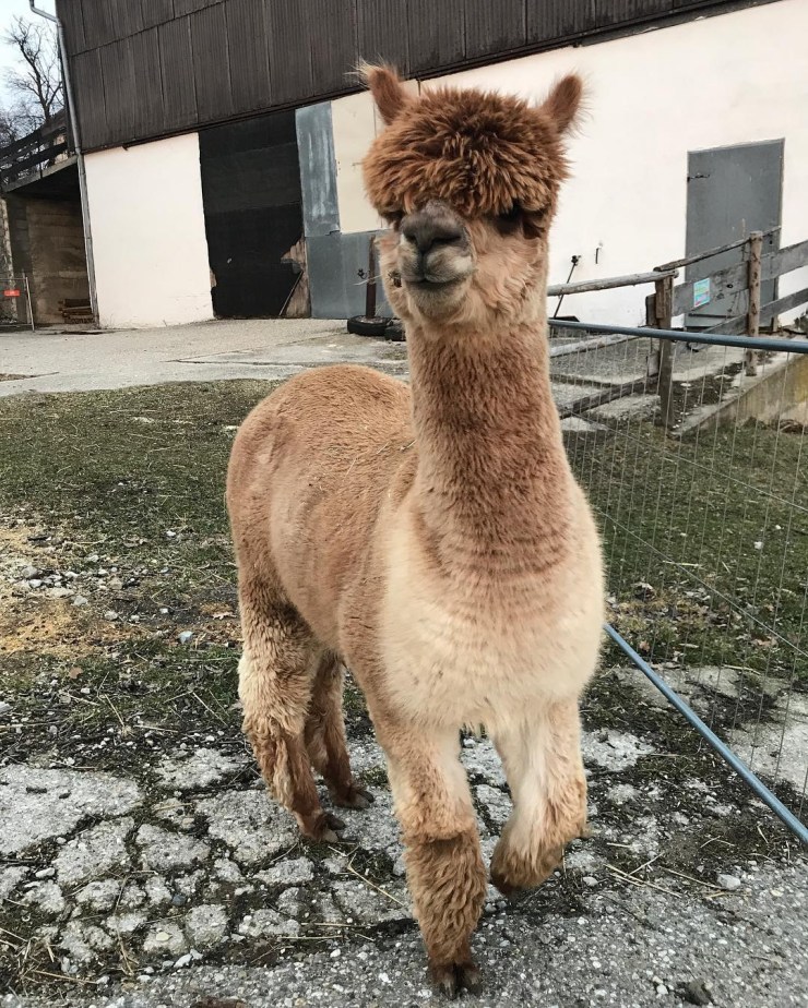 Mein Name ist Balu. Ich bin ein eher schüchternes und zurückhaltendes Alpaka und brauche immer etwas Zeit bis ich Vertrauen fasse. Doch mit einem Leckerli lasse ich mich manchmal sogar streicheln. Bei Spaziergängen bin ich immer als Letzter unterwegs, da ich sehr ruhig und gemütlich bin. („Probiers mal mit Gemütlichkeit, mit Ruhe und Gemütlichkeit“ – ich mache meinem Namen alle Ehre!)